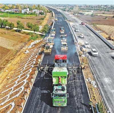 11月9日,南阳至邓州高速公路施工现场,建设者正加紧施工。 张峰 摄