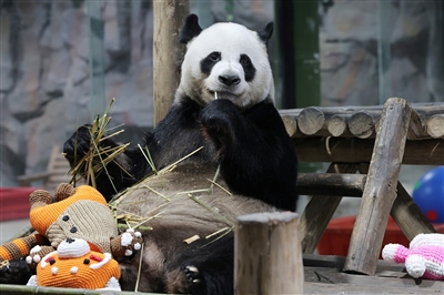 在洛阳栾川竹海野生动物园,大熊猫灵岩以“慢节奏”收获了一众粉丝。 陈家宝 摄