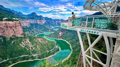 游客在宝泉旅游区体验“窝囊蹦极”。 冯汉斌 摄