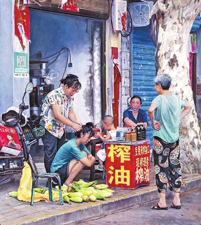 油画《夏日清晨》。 作者 顾颖(南阳)