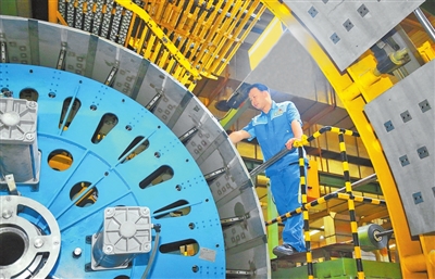 风神轮胎股份有限公司巨胎生产车间内,工人正加紧生产。 杜文斌 摄