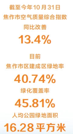 监测数据和牛俊英的感受一致。截至今年10月31日,焦作市空气质量综合指数同比改善13.4%,优良天数为206天、同比增加19天。