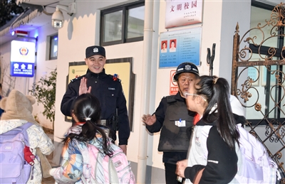 民警在开展护校安园工作。张国锋 摄
