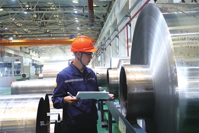 优箔(洛阳)金属材料有限责任公司工作人员正在对产品进行检测。