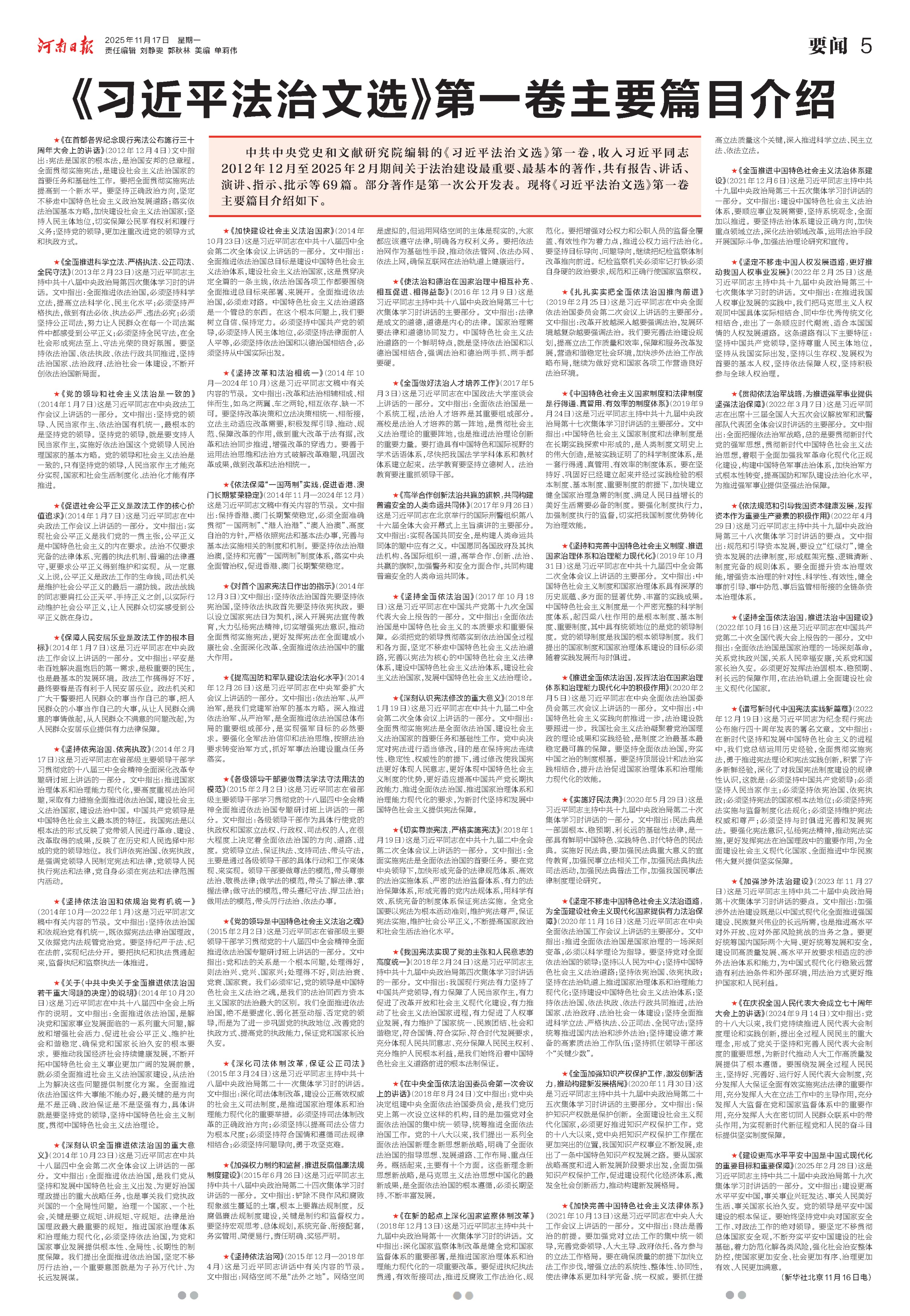 《习近平法治文选》第一卷出版发行