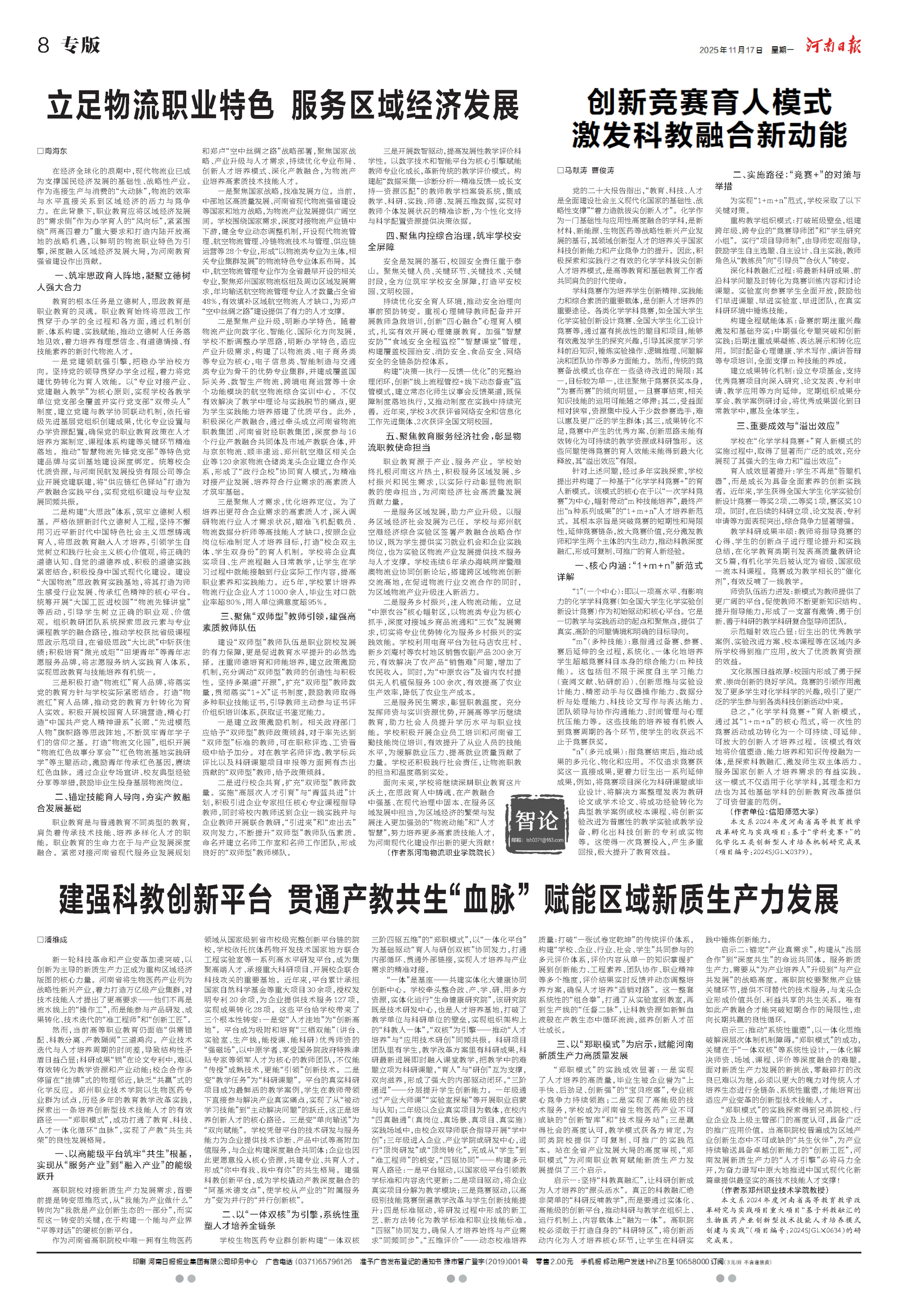 建强科教创新平台 贯通产教共生“血脉” 赋能区域新质生产力发展