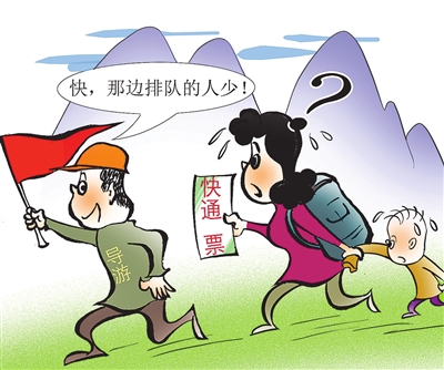 据《工人日报》报道,每逢假期,一些顶流景区成为家庭出游的热门选择,“优速通”“尊享卡”等官方快速服务开售就秒空。然而此类看似划算、便捷的套餐却暗藏消费陷阱,有的景区将普通排队包装成“快通服务”,有的导游加价倒卖官方“优速通”。 图/陶小莫