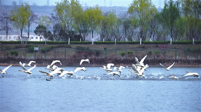 伊河国家湿地公园来了天鹅。
