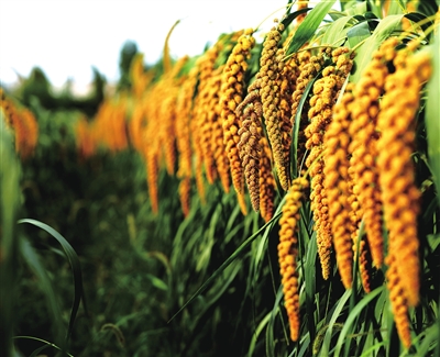 “伊川富硒小米”的前身——伊川县谷子示范方成熟待收割的谷子。