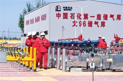 中国石化天然气分公司下属储气库分公司在冬季保供期间开展巡护。