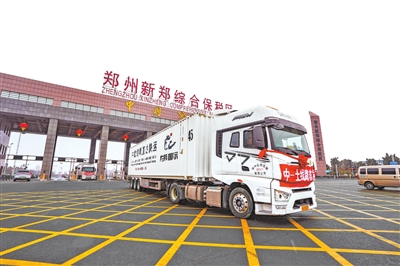 在位于郑州航空港北部的郑州新郑综合保税区,国际公路运输同样有声有色。