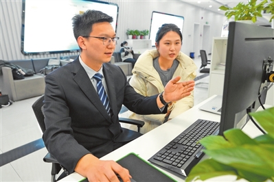 政务服务中心工作人员正在为企业提供“一对一”服务。