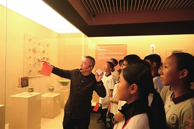 大信博物馆聚落创始人在给经开区实验中学学生讲解馆藏文物。
