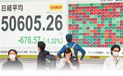 日本东京街头的电子股指显示屏(11月14日摄)。新华社/法新