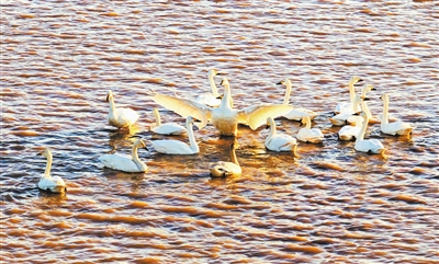 初冬时节,位于长垣市的黄河湿地鸟类国家级自然保护区迎来众多迁徙候鸟(11月18日摄)。 杨敬中 摄