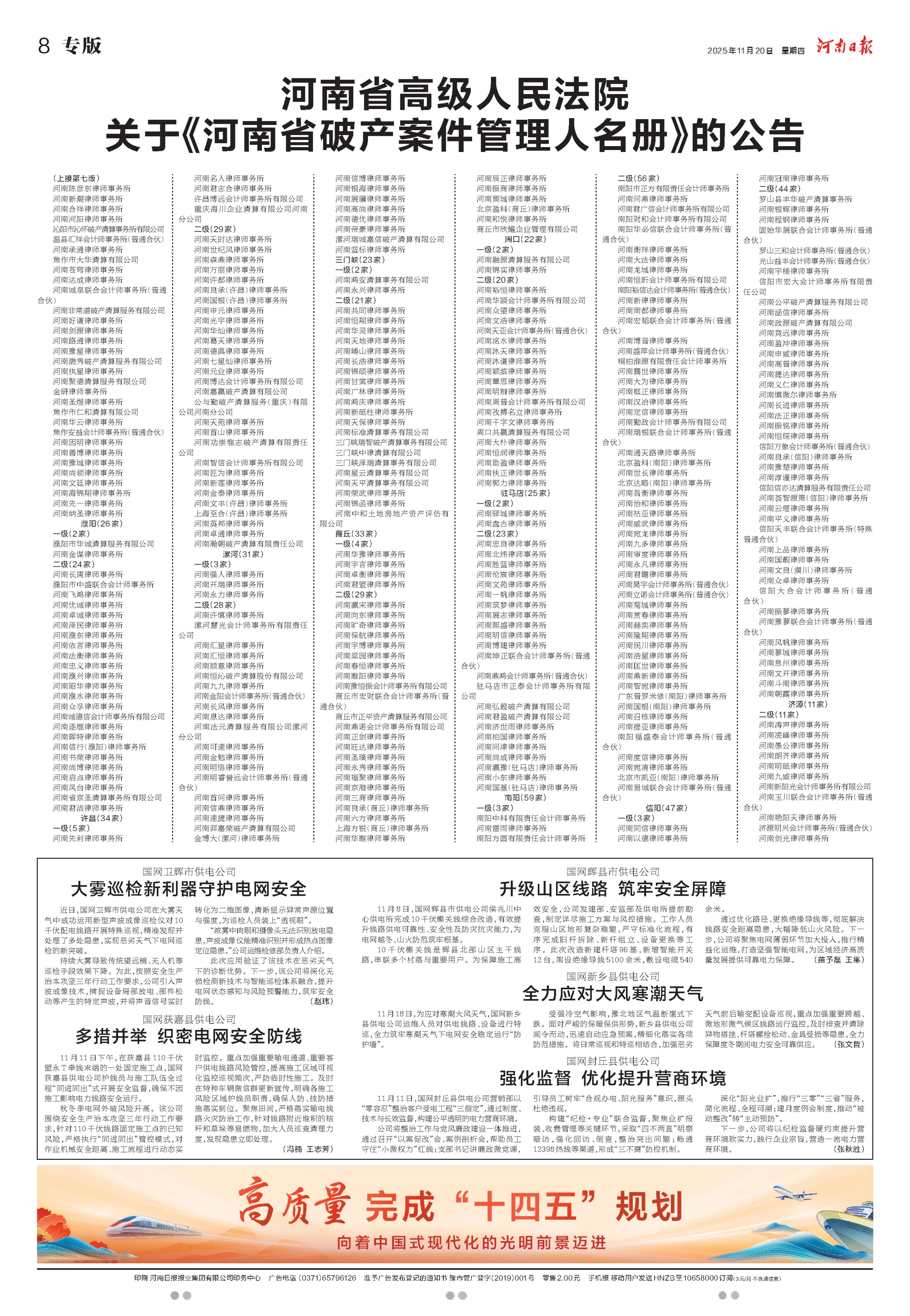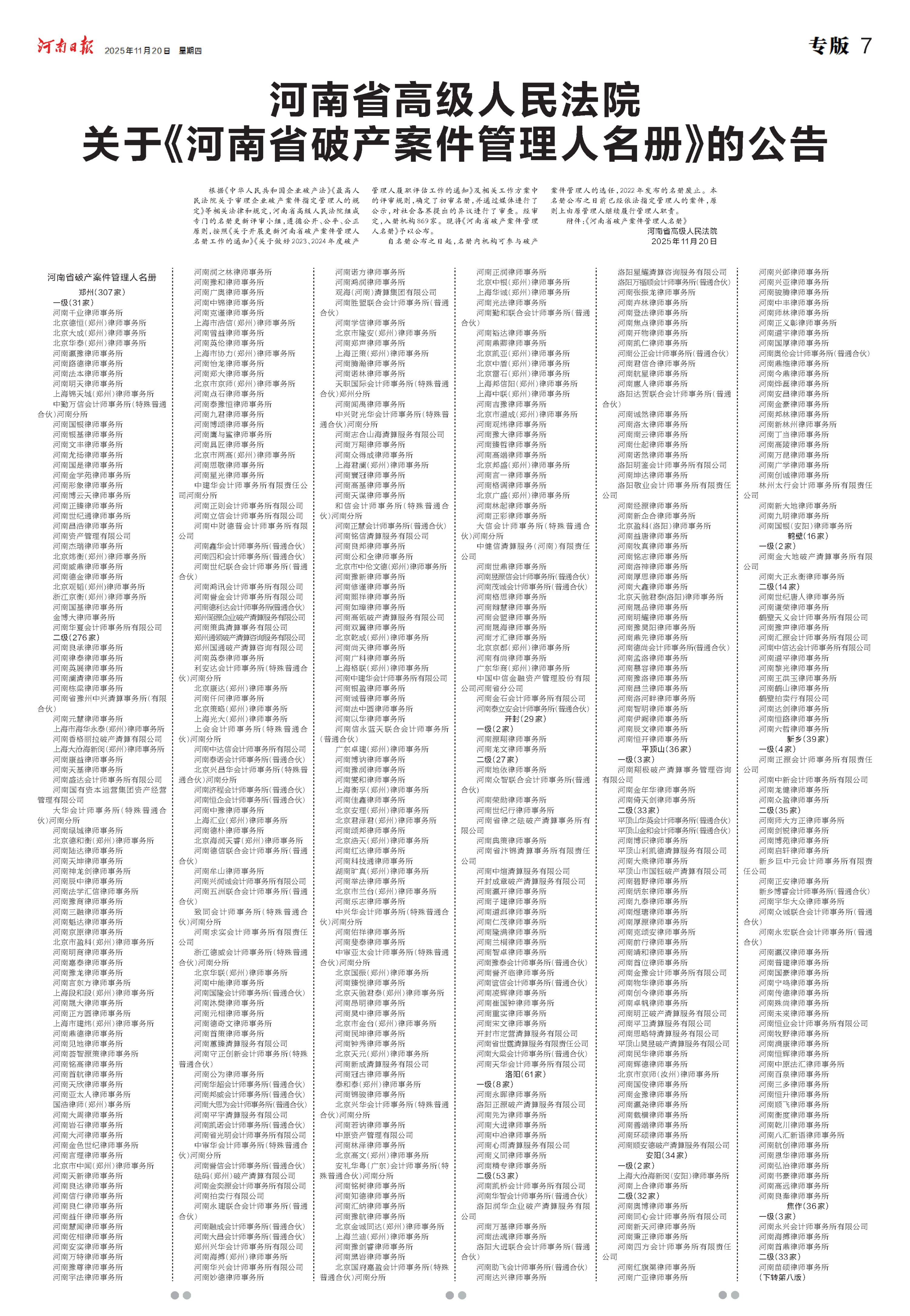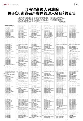 河南省高级人民法院关于《河南省破产案件管理人名册》的公告