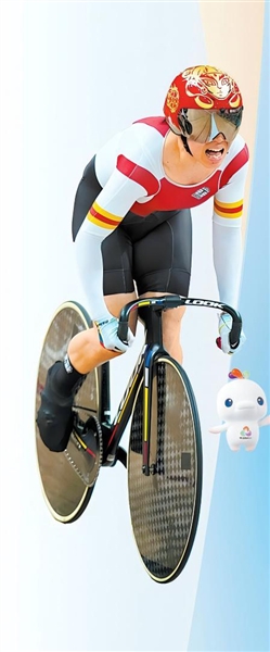 11月13日,河南队选手鲍珊菊在比赛中发车。当日,河南队夺得场地自行车女子团体竞速赛决赛冠军。新华社记者 吴鲁 摄