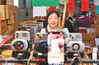 在温县铁棍山药产业园区,商户正在通过网络直播销售铁棍山药。徐宏星 摄