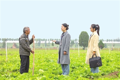 武陟县纪检监察干部在大虹桥乡土城村向群众了解相关情况。陈啸虎 摄