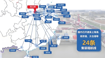 通江达海,不再只是梦想。周口港集装箱航线实现几何式增长,从2020年仅有的5条猛增至目前的43条(国内航线24条,国际航线19条),增长近8倍。