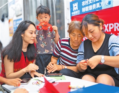 漫步源汇区河上街景区,肘歌、铜器舞等非遗展演让游客流连忘返。在非遗文创体验馆,剪纸、木雕等手工技艺吸引着不少亲子家庭驻足体验,大手与小手共同握着剪刀,在红纸上游走,留下一串欢声笑语。