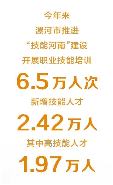 今年来,漯河市推进“技能河南”建设,开展职业技能培训6.5万人次,新增技能人才2.42万人,其中高技能人才1.97万人。从家政服务到机械操作,从电商运营到食品加工,培训精准对接市场需求,让劳动者手握“技能钥匙”打开就业之门。