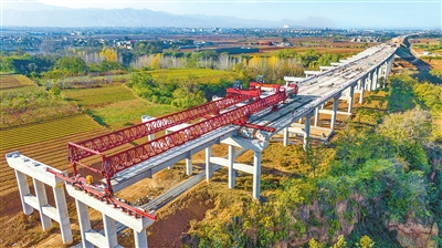 初冬时节,在郑州至洛阳高速公路洛阳境内项目建设现场,工人正在架设箱梁。作为我省重点建设项目,郑洛高速公路起点位于郑州市西南绕城高速公路,终点位于洛阳市二广高速公路,途经郑州荥阳市、巩义市,洛阳偃师区、伊滨区、洛龙区,全长99公里。 张怡熙 摄