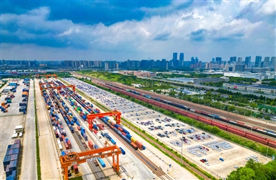 繁忙的中铁联集郑州中心站。 本报记者 聂冬晗 摄