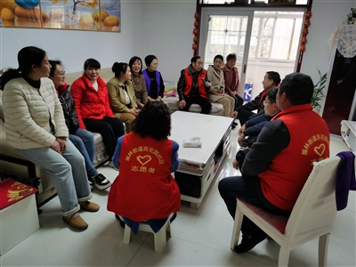 社区网格长、小区网格员、片区民警组织小区居民商讨水管改造筹资事项。 本报记者 杨之甜 摄
