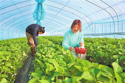11月27日,孟州市河阳街道前龙村,游客在采摘草莓。近年来,该村通过发展草莓种植,既带动了村民就业,又为乡村振兴注入了活力。 王铮 张泽斌 摄