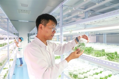 位于清丰县的河南华薯农业科技有限公司技术员正在培育脱毒薯苗。