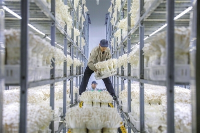 清丰县科丰生物科技有限公司车间,工人正在采收白玉菇。
