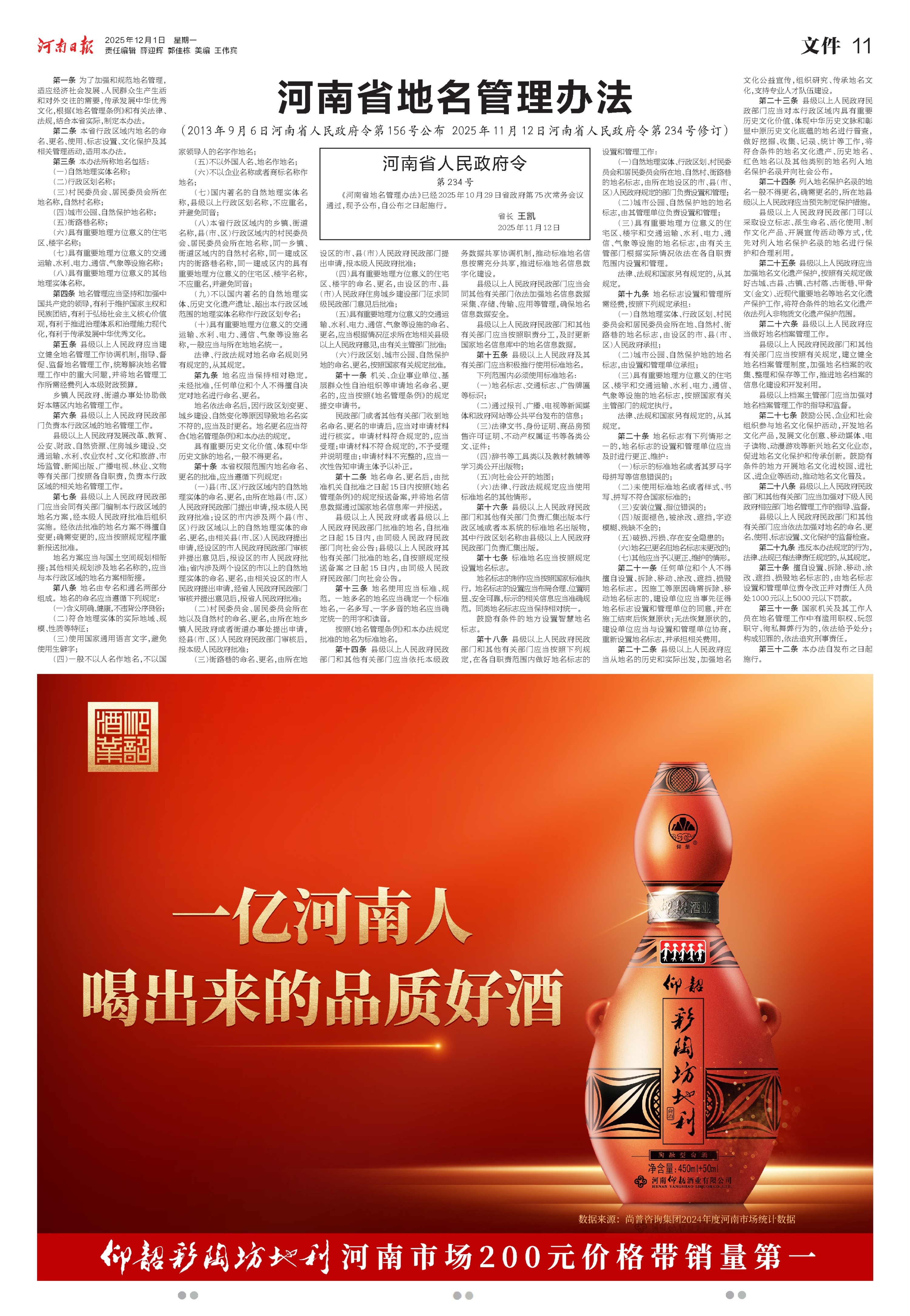 河南省地名管理办法