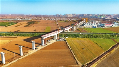 11月26日,随着最后一方混凝土精准入模,由中铁十五集团承建的平漯周高铁站前五标舞漯特大桥跨宁洛高速连续梁顺利合龙。平漯周高铁是国家铁路网规划的重要组成部分,西起郑渝高铁平顶山西站,东至郑阜高铁周口东站,正线长度199.679公里。本报记者 聂冬晗 摄