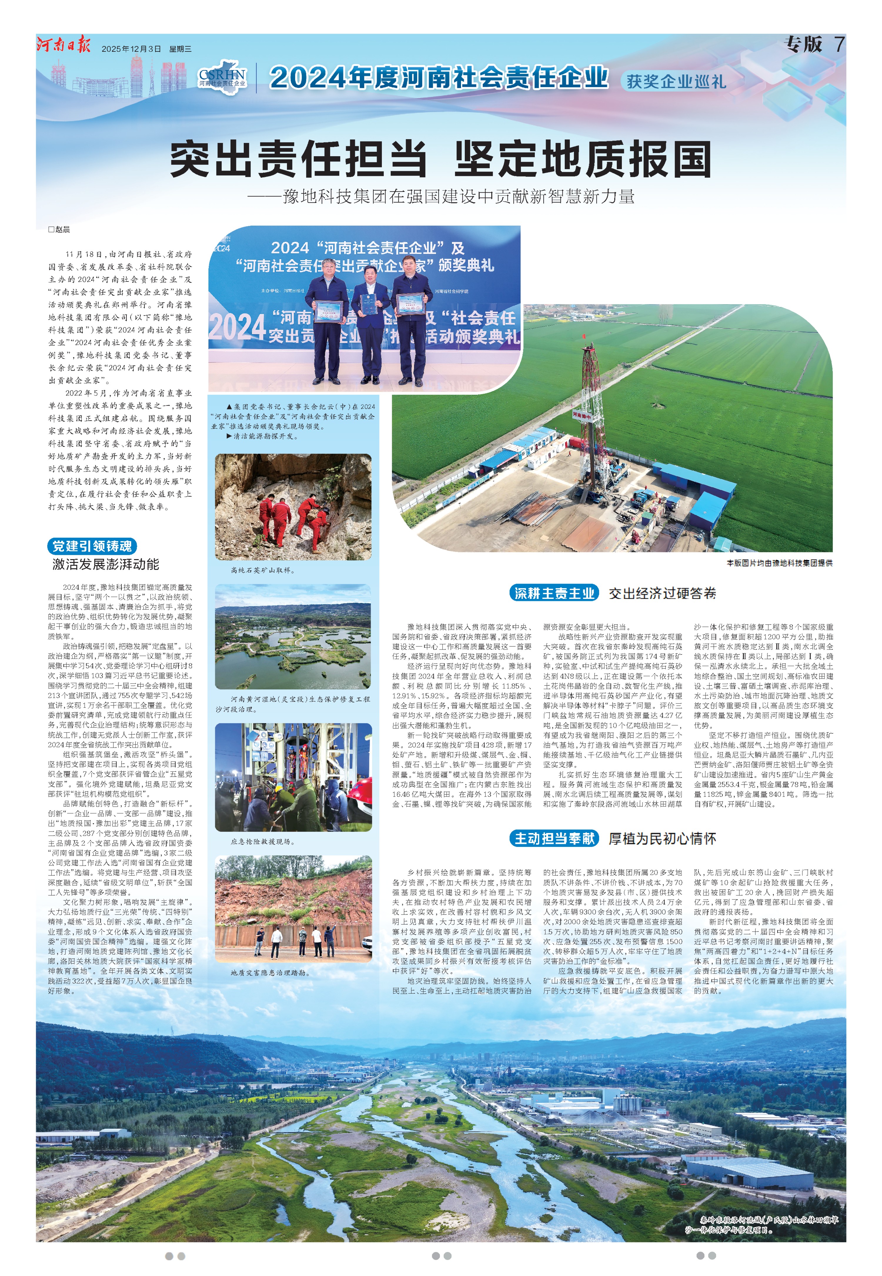 突出责任担当 坚定地质报国(2024年度河南社会责任企业获奖企业巡礼)