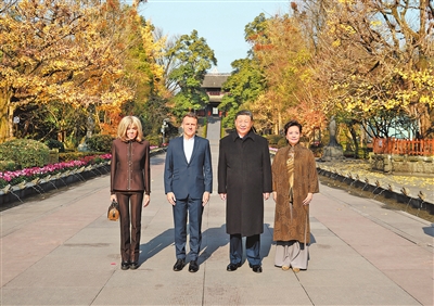 习近平夫妇邀请马克龙夫妇共进午餐,继续深入交流。