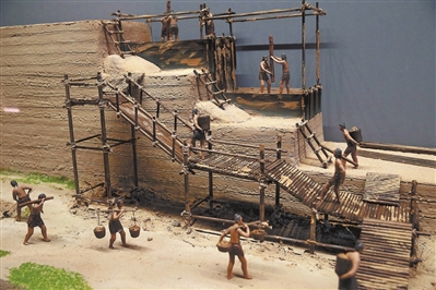 平粮台古城遗址博物馆通过模型,展示古城城墙采用的版筑法夯筑工艺。