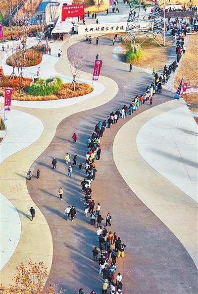 12月6日,大河村国家考古遗址公园正式向公众开放,大批游客排起长队。