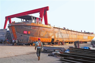 12月9日,在淮滨县造船园区,工人们加紧推进造船进度,园区内一派热火朝天的工作景象。 王长江 摄