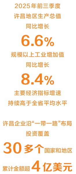 2024年,许昌地区生产总值突破3400亿元,同比增长6%;2025年前三季度,许昌地区生产总值同比增长6.6%,规模以上工业增加值同比增长8.4%,主要经济指标增速持续高于全省平均水平,综合实力稳居全省第一方阵。