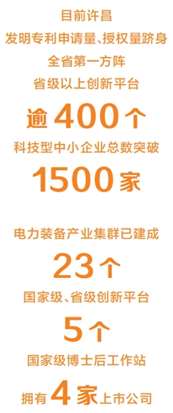 “创新驱动,推动了许昌的电力装备产业不断发展壮大、升级蝶变。”许昌市科技局局长冀伟说,目前,许昌电力装备产业集群已建成23个国家级、省级创新平台,5个国家级博士后工作站,拥有许继电气等4家上市公司,汇集各类专业技术人员1.6万人。