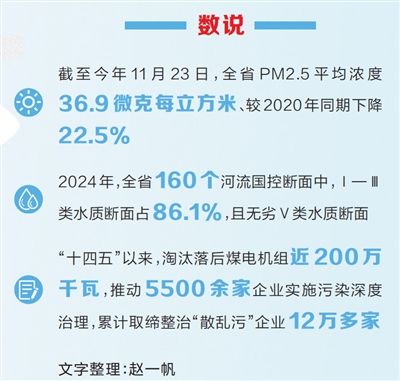 “十四五”以来,河南将大气污染防治作为重中之重,标本兼治。特别是今年以来,省委、省政府出台一系列方案,全省协同攻坚,推动治理提质增效。截至今年11月23日,全省PM2.5平均浓度36.9微克每立方米,有望全年实现40微克每立方米以下目标。同时,我省统筹水资源、水环境、水生态治理,巩固提升城市黑臭水体治理成效,大力实施“净水入黄河”工程,全面加强丹江口库区水质保护;扎实推进土壤污染源头防控、农村污水综合治理,确保2025年度污染防治攻坚成效考核实现明显进步。