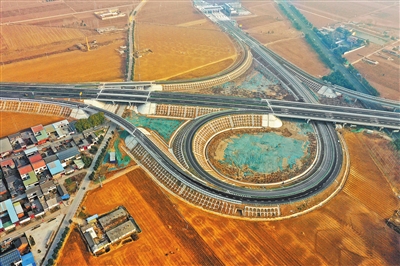 沁阳至伊川高速公路是河南省重点工程,计划于2025年12月底建成通车,目前主体工程已全部完工,进入通车倒计时阶段。图为沁伊高速沁阳南收费站立交枢纽(12月10日摄)。杨帆 摄