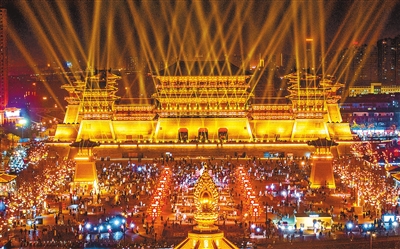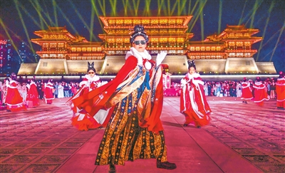 12月13日晚,洛阳市隋唐洛阳城景区应天门北广场热闹非凡。景区通过光影烘托演出氛围,为游客带来极具感染力的沉浸式体验,让游客深入感受夜晚古都的魅力。 本栏图片均为张怡熙 摄