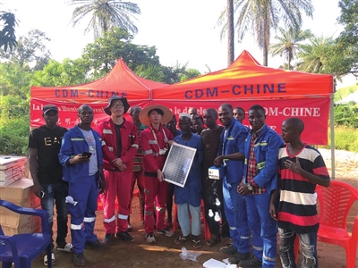 河南国际矿业几内亚公司向社区捐献太阳能照明设备。