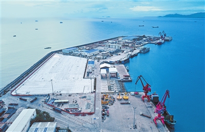 在海南自贸港重点园区——三亚崖州湾科技城拍摄的南山港。 新华社记者 蒲晓旭 摄