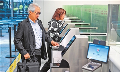 入境旅客在海口美兰边检站使用快捷通道通关。 新华社记者 杨冠宇 摄