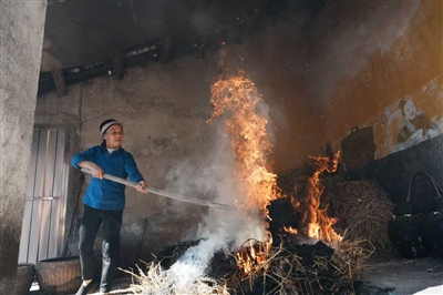 “酒文化根在河洛,我们的米酒技艺也是从那里传承而来。”12月15日,龙南市杨村镇杨村酒坊里,江西省非物质文化遗产项目龙南杨村米酒酿造技艺代表性传承人廖旺娣正用稻草火“焙酒”。