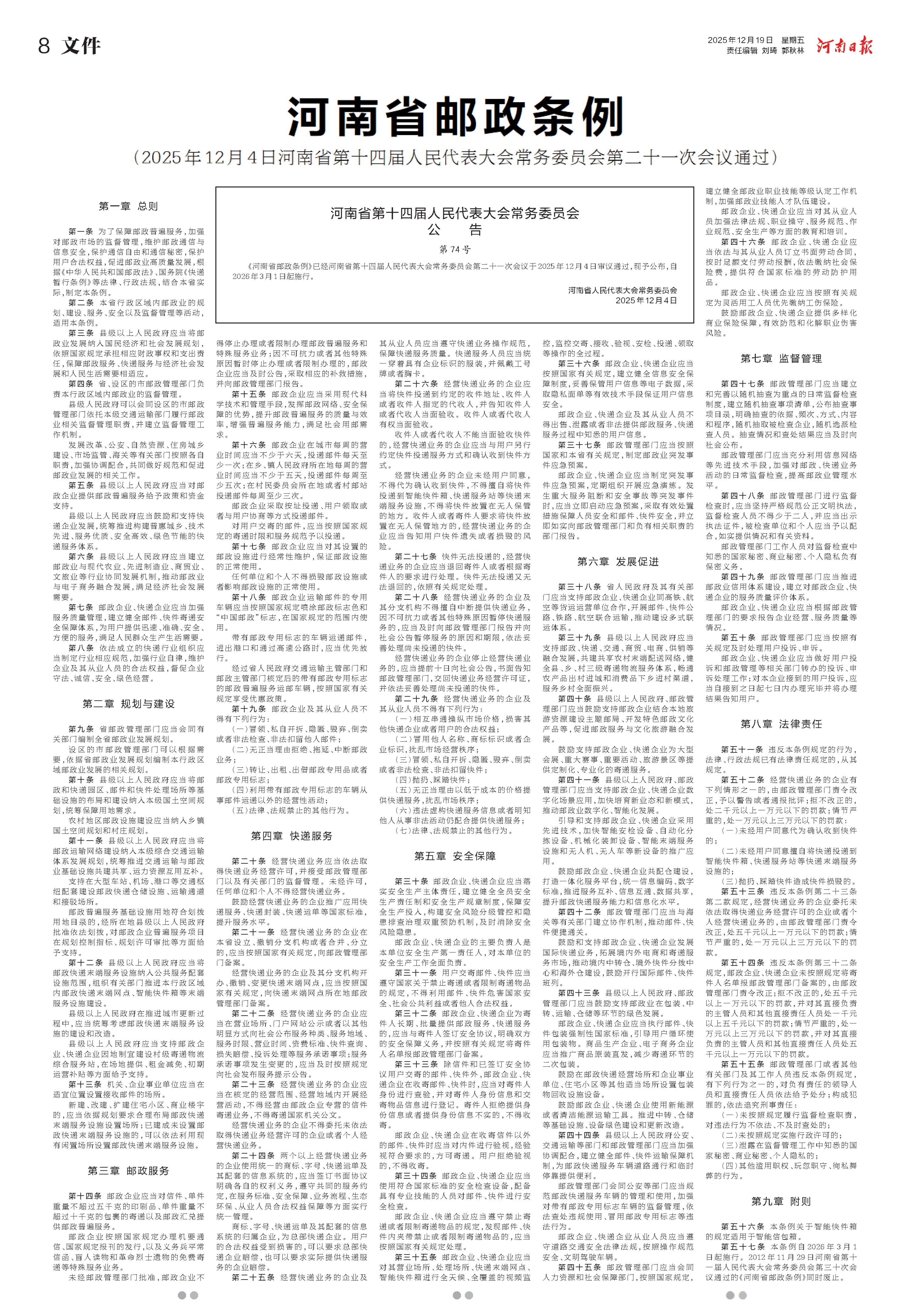 关于《河南省邮政条例(修订草案)》审议结果的报告