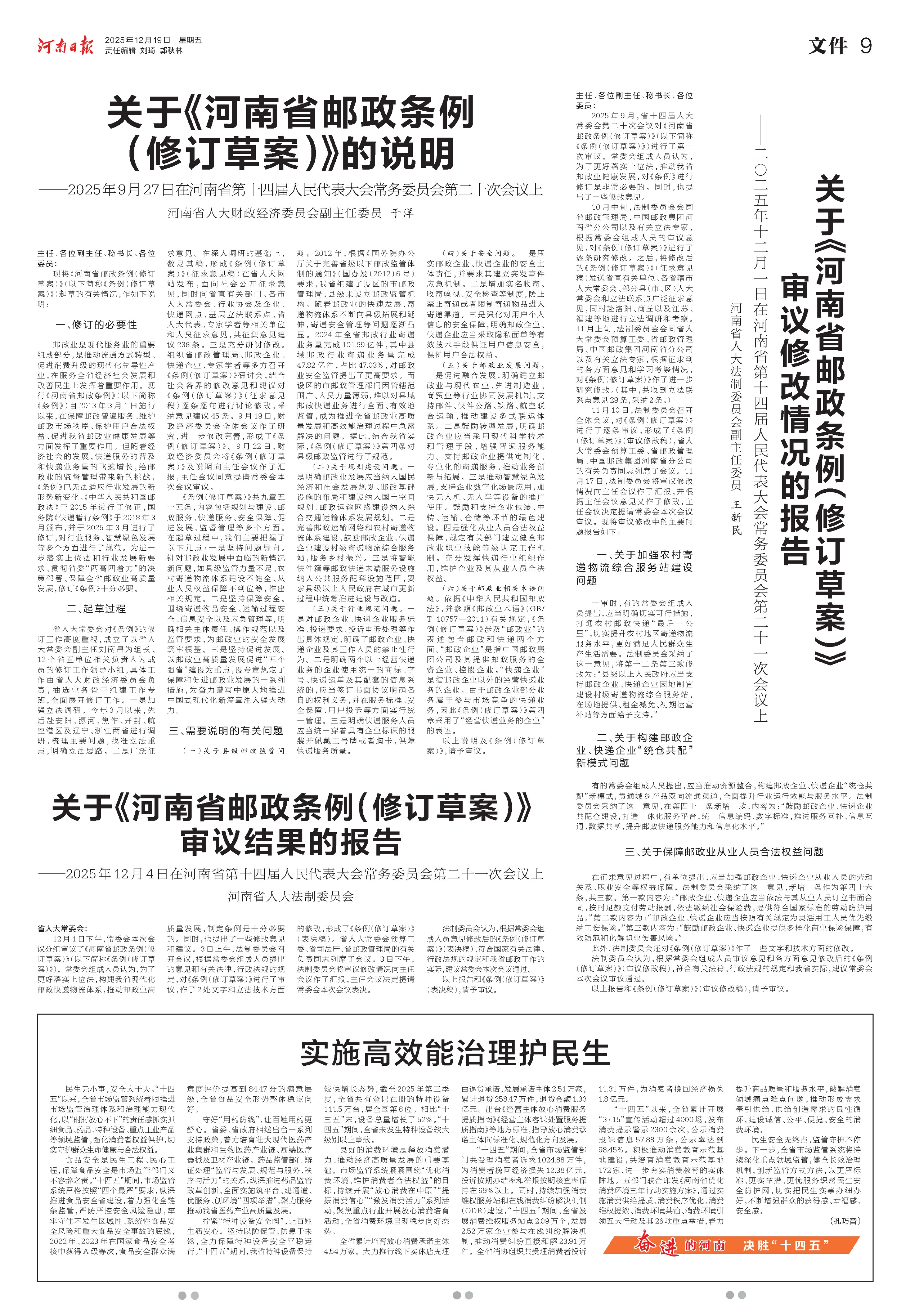 关于《河南省邮政条例(修订草案)》审议修改情况的报告